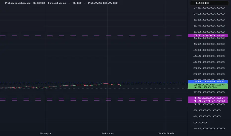 After testing the support at $14,717 in Q4 2026 (as mentioned yesterday in my post), the stock market will rise to reach a new high over the next four years, with the DECODED resistance at $57,660, marking the end of the first Grand cycle.