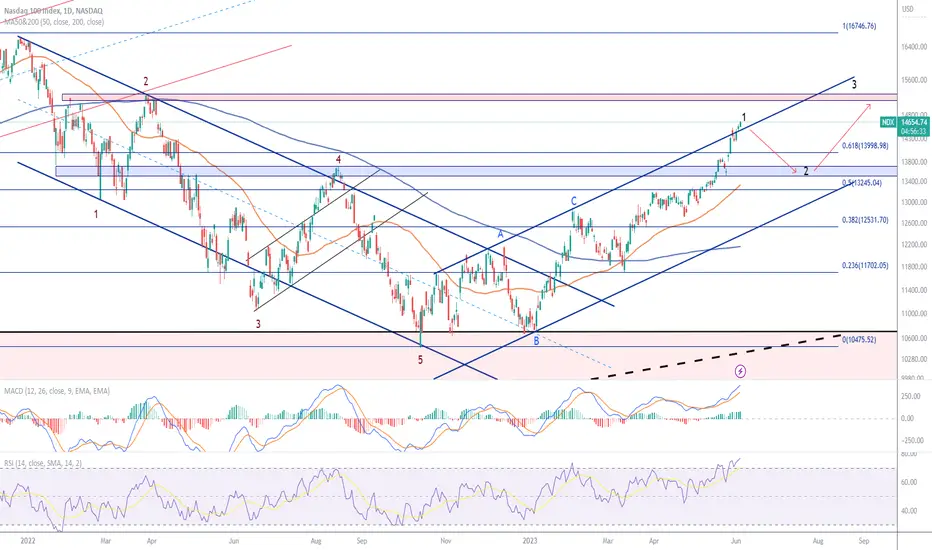 Similar to my SPX idea, the NDX seems to be forming a 5-wave impulse off the back of the AI enthusiasm. I expect a bullish pullback to pull the index lower towards the 61.8% Fibonacci retracement level of $14,000 which will flip from a resistance to a support. A break below $14,000 will allow the index to slide into the support range between $13,500 and $13,700. A break below the 50-day MA currently at $13,330 will invalidate the 5-wave impulse.