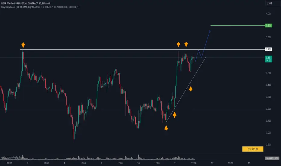 30m TF. The NEAR coin is actively growing and has currently formed a compression near the horizontal resistance level. The daily trading volume has been increased to 300 million. The local trend is upward (noticeably by the loyalties rising over the last day), which indicates the dominance of buyers. The basis for entering the transaction will be trading below the level, purchasing activity and, as a result, an impulse breakdown with the withdrawal of liquidity.