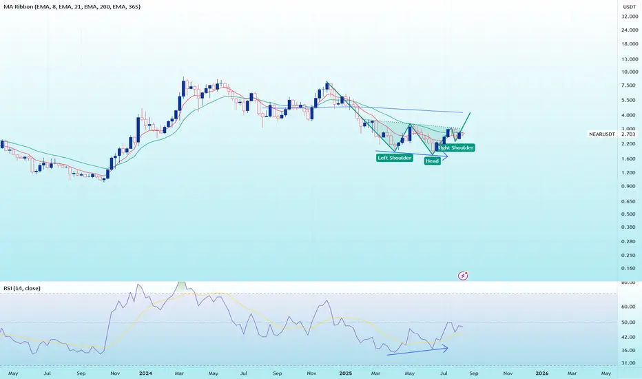 Based on the weekly chart, an inverted head and shoulder and a bullish divergence were spotted, therefore we're looking for a reversal momentum from Near Protocol to a bullish trend for the upcoming weeks.