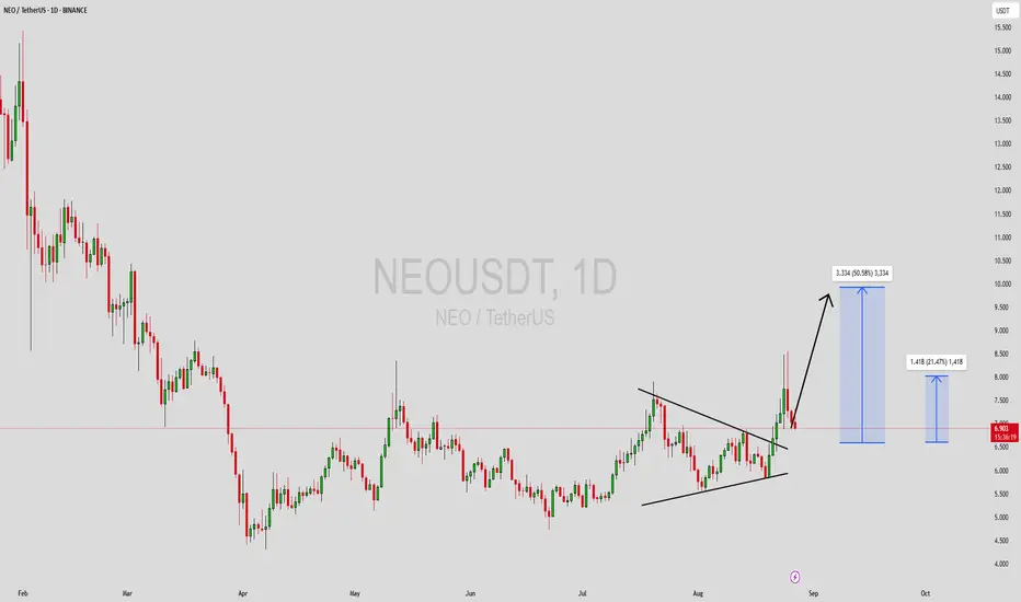 This setup suggests that NEO could be entering a sustainable bullish phase, with short-term upside targets pointing towards a 30% to 40% potential gain from current levels. Historically, NEO has shown sharp moves once key resistance levels are cleared, and the recent price structure highlights that same momentum could be building again.
