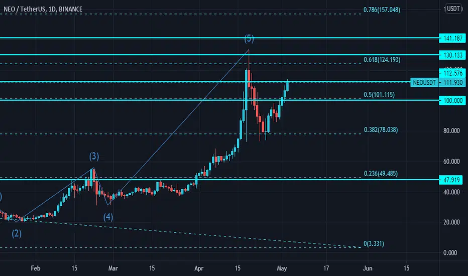 As you can see, NEO couldn't break above the Golden ration taken from the ATH . Now we expect it to reach 124 again and break above it, if it does, our targets are (mid term):