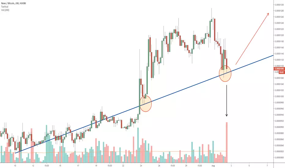 On heavy selling volume, bears failed to break below the uptrend trendline. This is a bullish sigh, which should result in an upside swing.