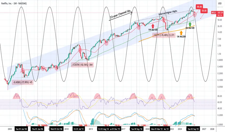 As a result, this model suggests that the stock has clearly topped and is entering a Bear Cycle or at least a correction to the 1W MA100. That is why our first Target is at $88.00. If the market closes a 1M candle below the 1W MA100, as in January 2022, September 2011, August 2004 (all same Cycle Top conditions as described above), we even expect a deeper correction towards the bottom of the 23-year Channel Up. In that case our Target will be $58.00, potentially making contact with the 1M MA100.