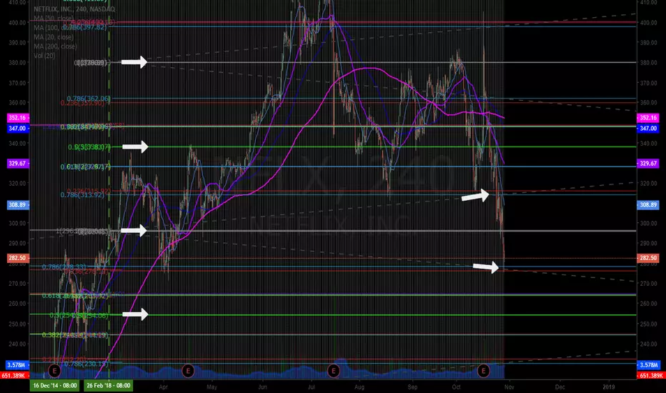 NETFLIX (NFLX) on watch for bounce at diagonal trendline support and possible MACD turn on 240 min chart.