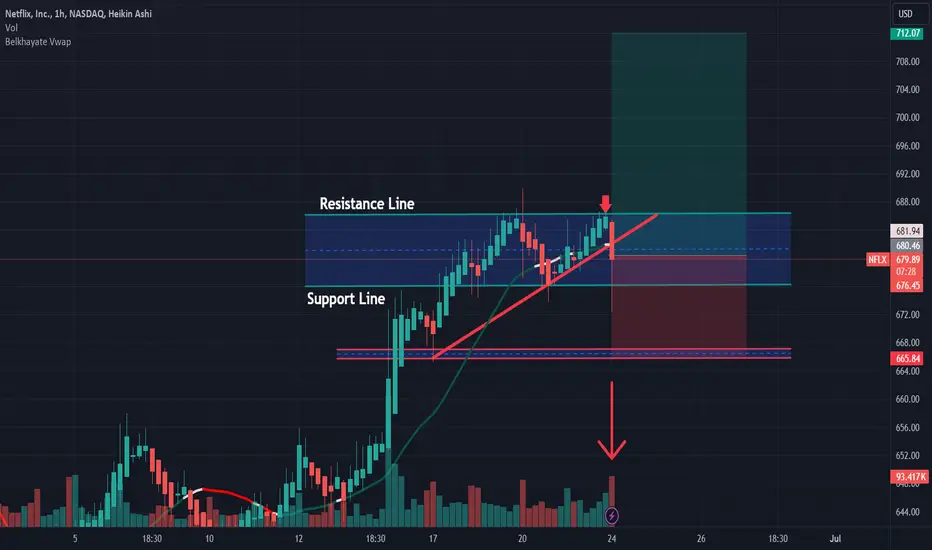 Sell idea on NETFLIX as you see on the chart because we have the breakout with force the vwap and the support line by a big red candle follow by a large red volume.