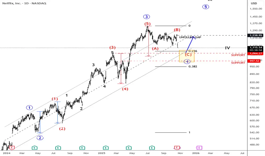 In Elliott Wave terms, it looks like a potential fourth wave retracement that could start to stabilize somewhere around the previous wave three high near the 1060 area, or possibly a bit lower, closer to the 1K level. This whole zone could be quite attractive for a rebound, especially since some of the gaps above the current price may still be filled — something that often happens when a stock remains in an uptrend.