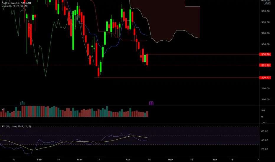Will continue to monitor this long and watch for short opportunities we are a bit oversold but there are no major support lines to stop NFLX from going down to 329.73
