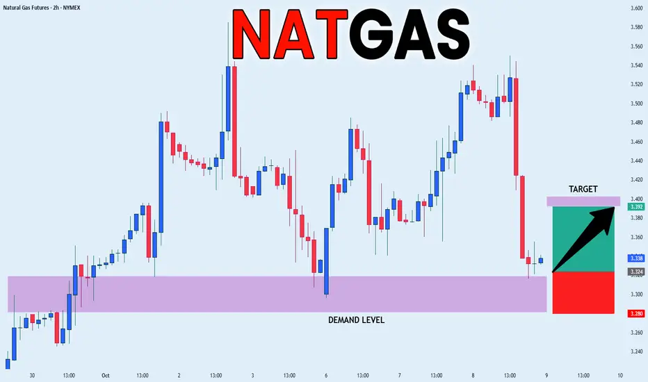 ✅NATGAS reacts perfectly from the demand level, confirming bullish intent after liquidity sweep below structure. Buyers step in from discounted pricing, aiming for a recovery toward the 3.39$ target zone.