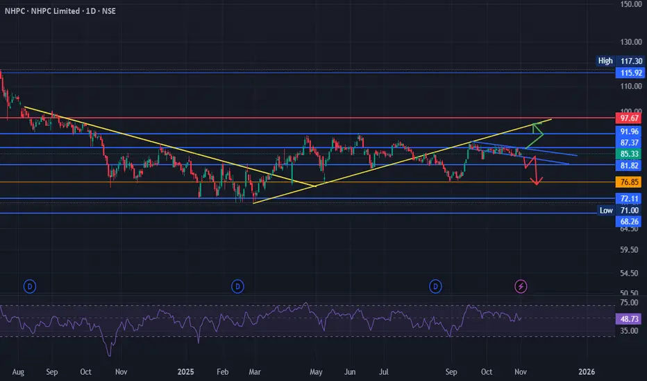 Play: consider accumulating on sustained close >₹88 with conviction (breakout), or buy dips into ₹78–75 with a 3–6 month horizon if comfortable with project cycle risk.