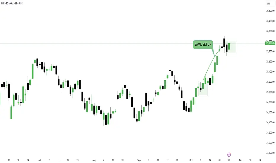 But note this — the recent five candles have continuously been signaling profit-booking levels, meaning the index could give a dip anytime.