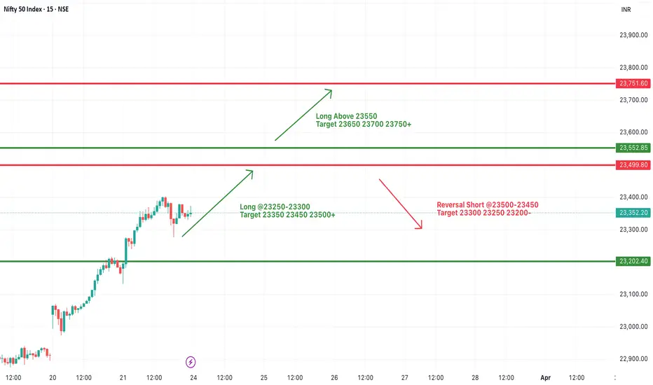 Today will be gap up opening expected in nifty. Expected opening near 23450 level. After opening if nifty gives breakout and starts trading above 23500 level then expected strong upside rally upto 23750+ level in opening session. 23500-23450 level will act as resistance. Any correction only expected if nifty gives reversal from this level.