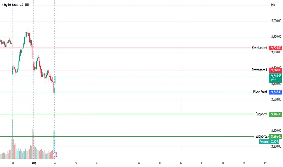 If the candle stays above the pivot point, it is considered a bullish bias; if it remains below, it indicates a bearish bias. Price may reverse near Resistance 1 or Support 1. If it moves further, the next potential reversal zone is near Resistance 2 or Support 2. If these levels are also broken, we can expect the trend.