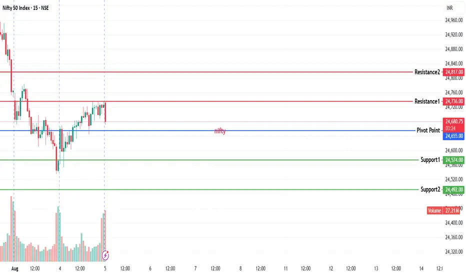 If the candle stays above the pivot point, it is considered a bullish bias; if it remains below, it indicates a bearish bias. Price may reverse near Resistance 1 or Support 1. If it moves further, the next potential reversal zone is near Resistance 2 or Support 2. If these levels are also broken, we can expect the trend.