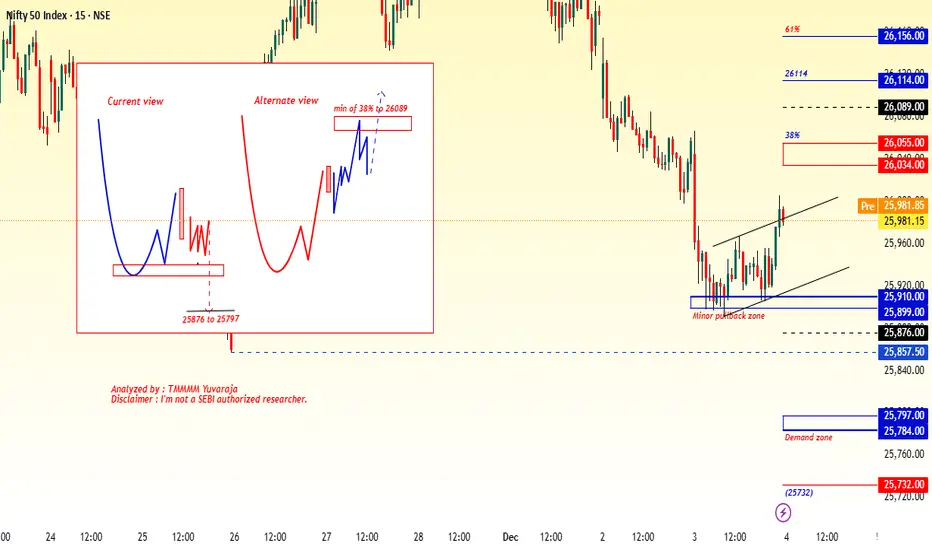 There are no changes in sentiment until the RBI policy announcement, so the market may experience gradual ups and downs. The momentums are unpredictable. Structurally, if the initial market takes a pullback, we can expect a pullback continuation with a little consolidation, because yesterday’s pullback had little strength (alternate view).