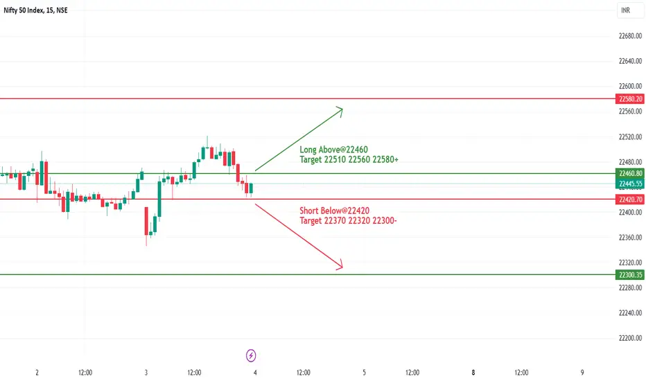 Nifty will be gap up opening in today's session. After opening nifty sustain above 22460 level and then possible upside rally up to 22580 level in today's session. in case nifty trades below 22420 level then the downside target can go up to the 22300 level.