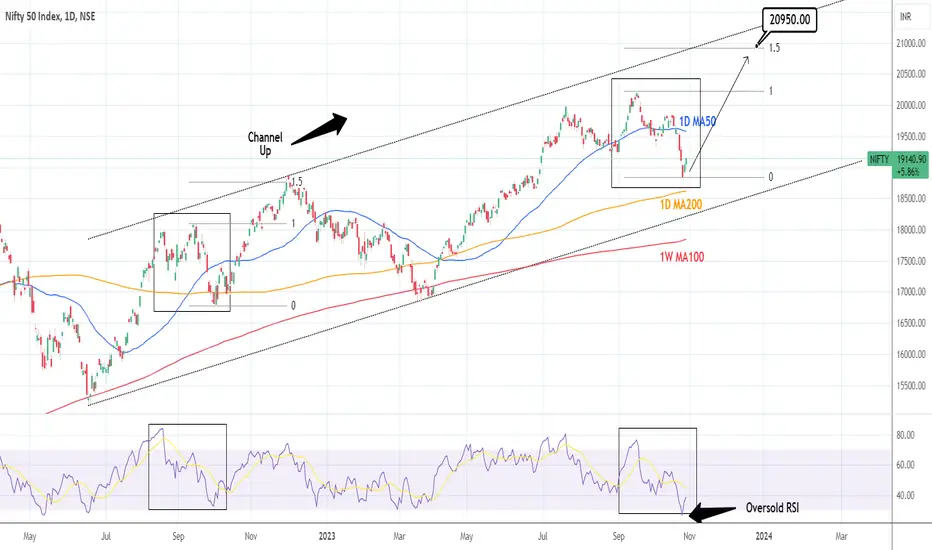 Nifty 50 turned oversold last Thursday on the 1D technical outlook and that attracted investors which restored the timeframe from oversold to just bearish (RSI = 38.950, MACD = -141.600, ADX = 34.223). This shows considerable buying strength, a little over the 1D MA200, a support level that is holding since April.