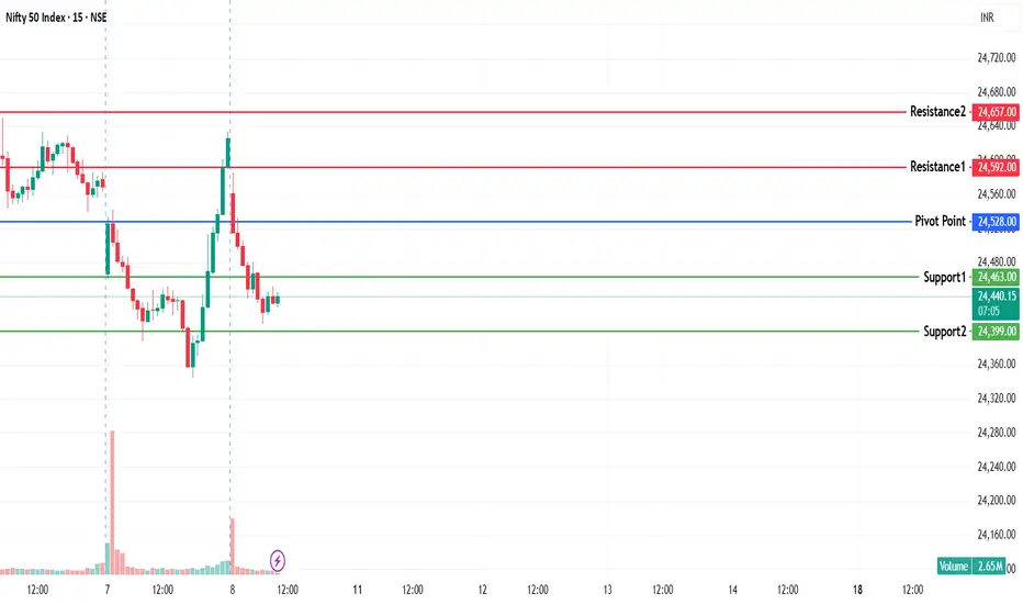 If the candle stays above the pivot point, it is considered a bullish bias; if it remains below, it indicates a bearish bias. Price may reverse near Resistance 1 or Support 1. If it moves further, the next potential reversal zone is near Resistance 2 or Support 2. If these levels are also broken, we can expect the trend.