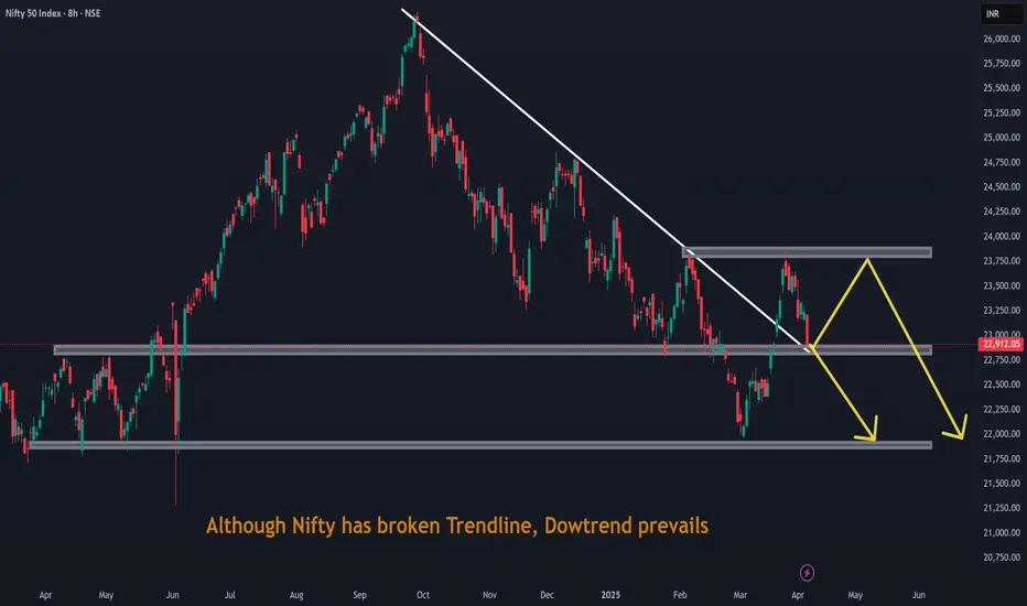 Although Nifty has broken Trendline, Dowtrend prevails. Due to global economy turmoil and US tariff war.