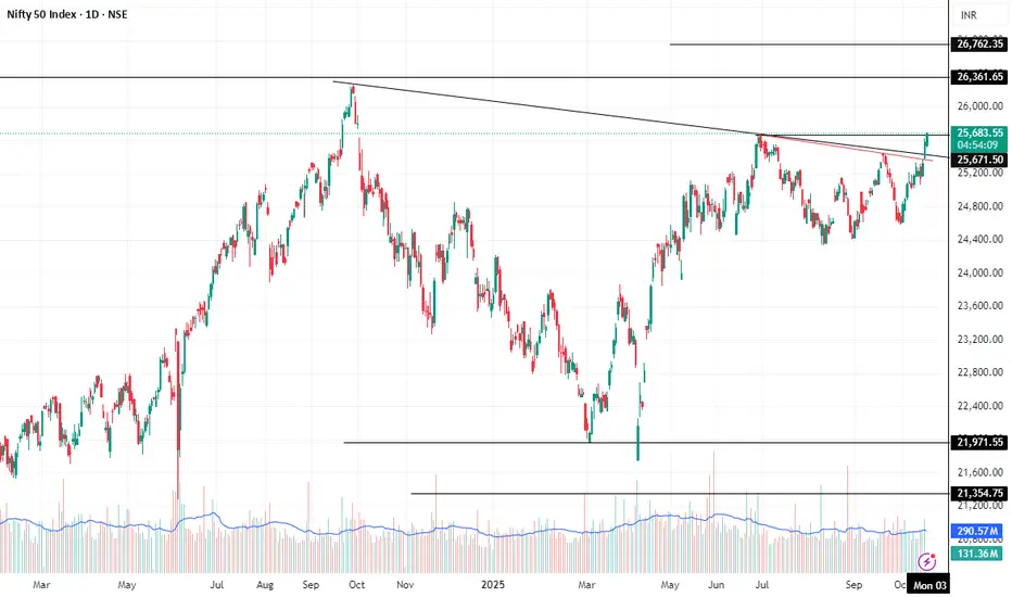 Nifty has clearly broken out from Cup & handle pattern with neckiline 25,450