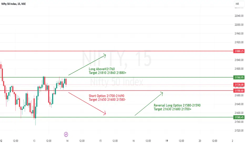 Nifty will be gap down opening in today's session. After opening nifty start trading below 21700 level and then possible downside rally up to 21580 in today's session. in case nifty trades above 21760 level then the upside target can go up to the 21880 level.also possible reversal upside 21580 level.