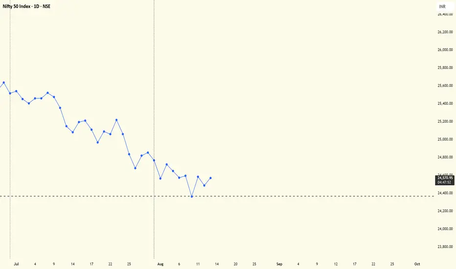 Looking at this chart, the benchmark has tried to push its limits several times, but it hasn’t been able to sustain the momentum — for example, on 14th July, 18th July, and again in August. This shows that neither buyers nor sellers are currently very strong. There is still ample room for the index to move further down. Let’s wait for another move before the picture becomes clearer.