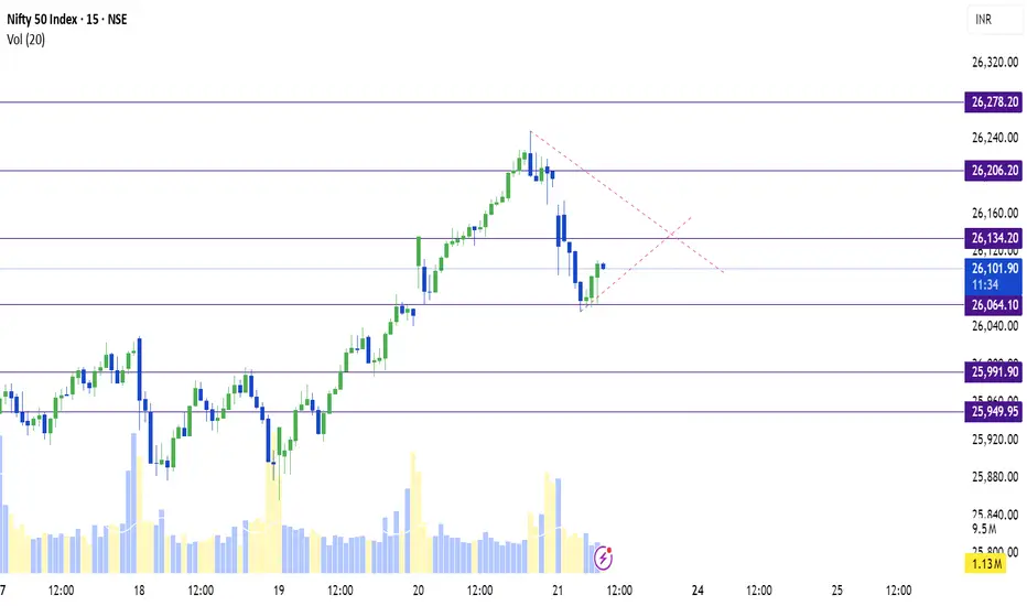 Go "LONG" if it stays above 26064 with 26134 as the first target. Breaking and sustaining that also breaking today's high might lead to 26206.20 and if it also breaks and sustains that then we might see 26260 to 26278.20 on the charts.