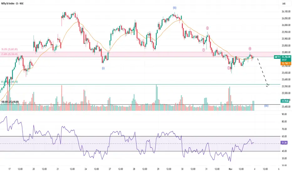 I’ll be watching for the market to sustain below 25768 atleast 15 min. for a target of 25565-25418 with a SL of 25835 (SL on 15 min. candle close).