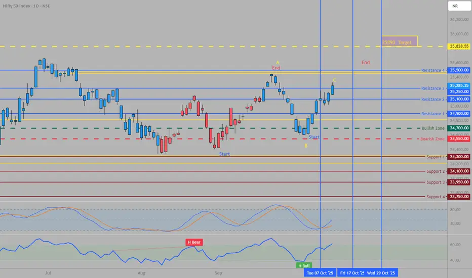 On Friday, Nifty closed at 25,250, reaching its wave C target.