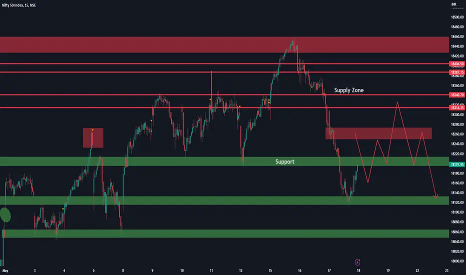 ---------->> This will again act as resistance, but while breaking 18260 level price leaves a supply zone in the range 18340-18360 range, so today price will test these 2 zones.