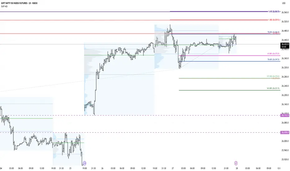 NIFTY - 15MIN view - Trading in balance and against short term cluster! - as long as it trades inside the balance, and continue to monitor the gap below yesterday and holding recent .618 to check if there is continued balance vs reaction back down !