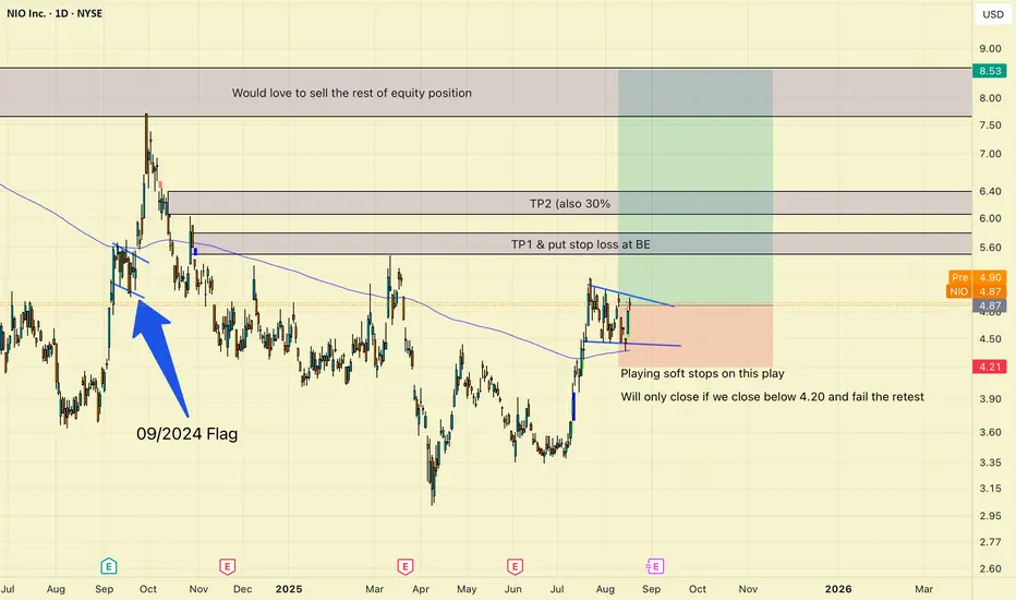 Last Time I played this pattern on NIO was back in September of last year and you can see to the left on my chart that it produced a 30% upside breakout from the move. If I remember correctly the volume and the move was probably news driven.