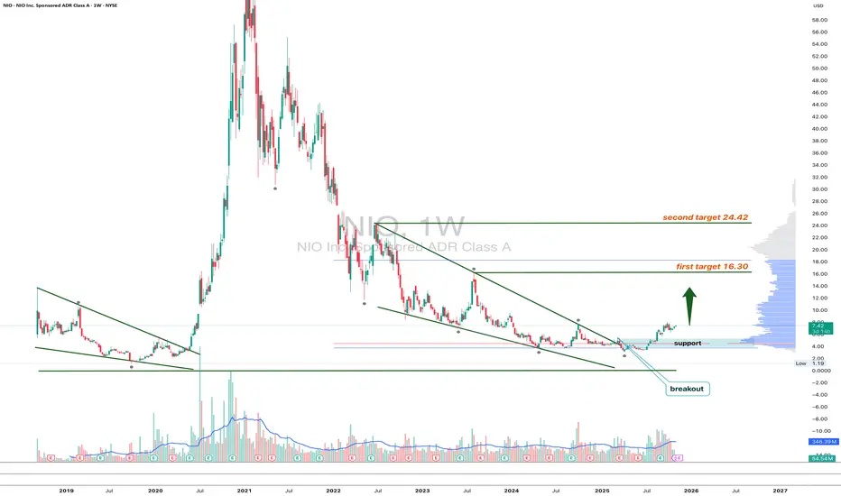 Technically, NIO has broken out of a long downtrend and is holding above the key $7.4 support. On the weekly chart this looks like the first sign of a long-awaited reversal. Fundamentally, however, the story is still mixed.