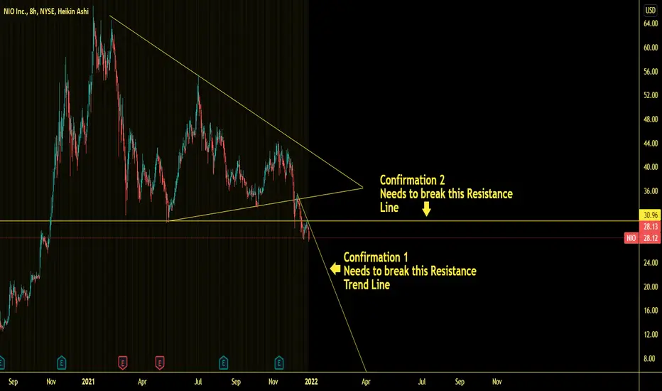 Before buying in NIO, you would need it to break the resistance trend line CONFIRMATION 1.