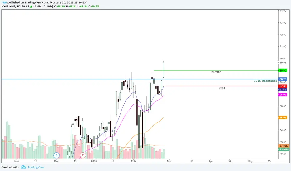 Looking to take the retest from today's Bullish Retest Gap through 2016 previous resistance. NKE could be a scorcher here...