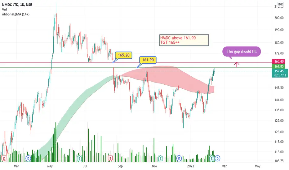 NMDC looking good on chart.Above 161.90 should hit 165++ gap should fill.Keeping on radar NMDC 160 CE for very short term.