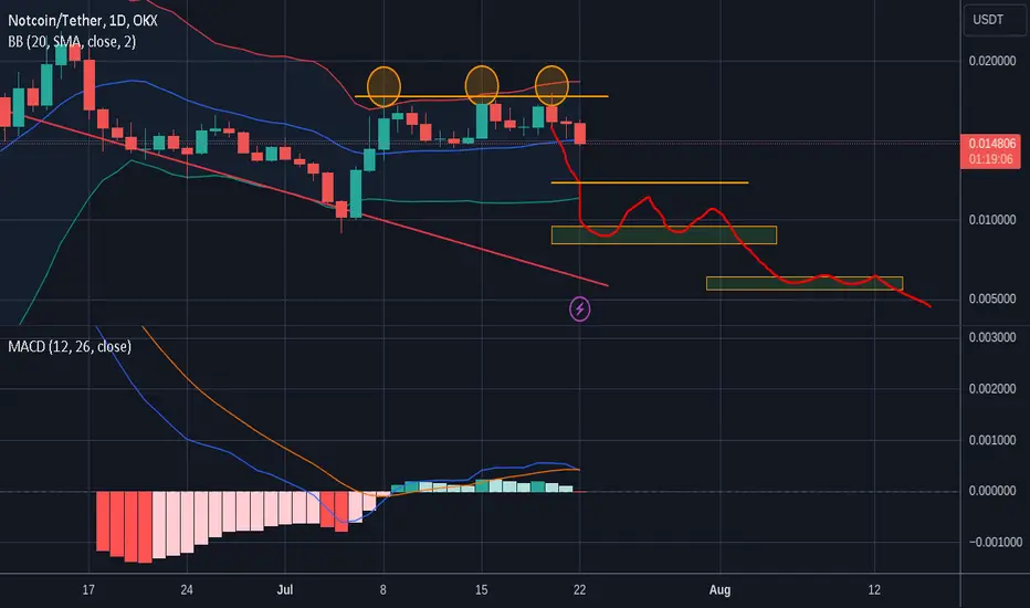 On the daily timeframe we see a death cross, and also a triple top has finished forming, first I’m waiting for it to work out at 0.013, but I also think that the fall will not stop there, perhaps with quite strong rebounds, but still the fall will continue at least until 0.008