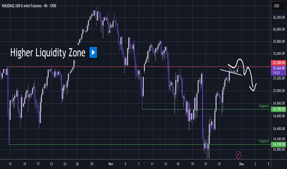 This is quite a bot favourite topping pattern with the textbook bullish pattern leading to a slightly higher high liquidity sweep - which here is into the higher liquidity zone above resistance.