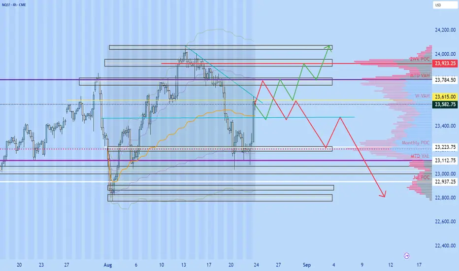 The bulls want to push the market higher while the bear wants a 2nd leg down on the daily. PA loses 20EMA then reverses up and we are approaching September where catalyst will help push the market to create new highs. We may retrace from here then move up. My bias is super bullish however not eliminating the potential of a small retracement. i.e. 50% retracement then pushes up. Just my thought process. Cheers