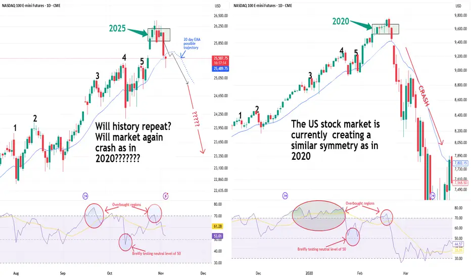 The NASDAQ 100 is creating a similar price action symmetry and RSI behavior to the pattern seen just before the 2020 crash.