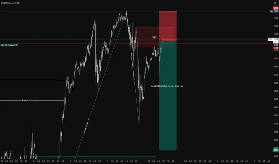 Market retraced into a supply zone aligned with the 75% premium line after a clean breakdown.