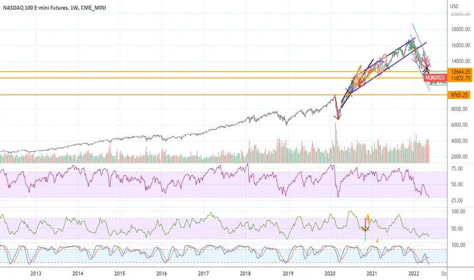 NQ Weekly oversold on RSI with positive MFI divergence.
