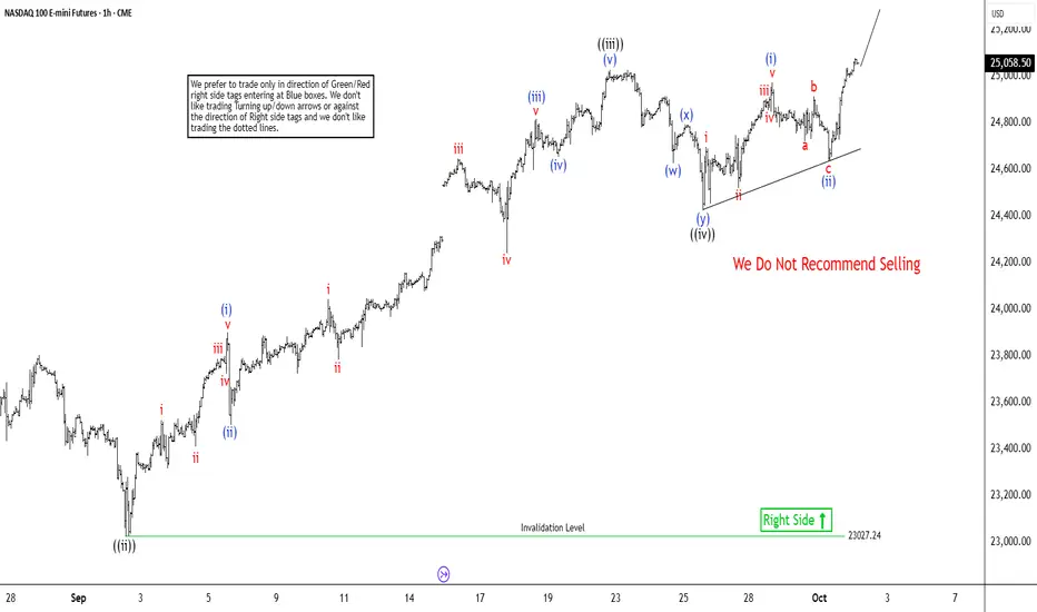 The short-term Elliott Wave analysis for the Nasdaq (NQ) reveals a bullish cycle initiated from the August 2, 2025, low, progressing as a five-wave impulse structure. Wave ((i)) surged to 24,068.5. The corrective wave ((ii)) concluded at 23,025.25, as depicted in the one-hour chart. The Index then advanced in wave ((iii)) to 25,027.25. This wave developed as an impulse in a lesser degree, showcasing robust bullish momentum in the market.