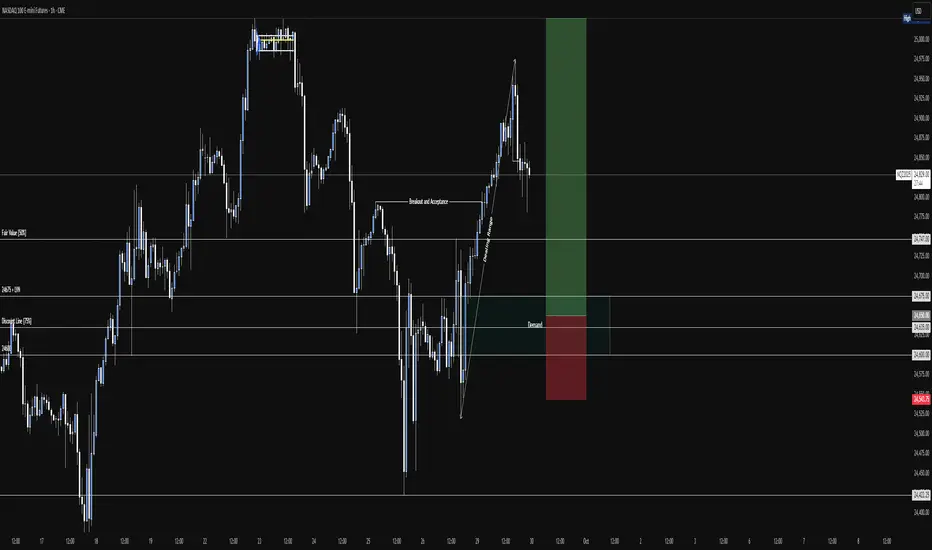 Context: Market broke out and accepted above the recent dealing range. Structure confirms bullish bias as long as demand holds.