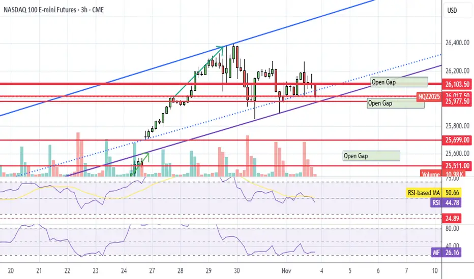 NQ left an open gap after the break, so now we have one above and two below. Quite frankly, there's too much whipsaw to be trading options so I'm taking a break.