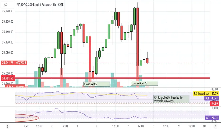 Also, my MFI indicator doesn't seem to be working right now, or there's no money flowing into futures. That's bearish.