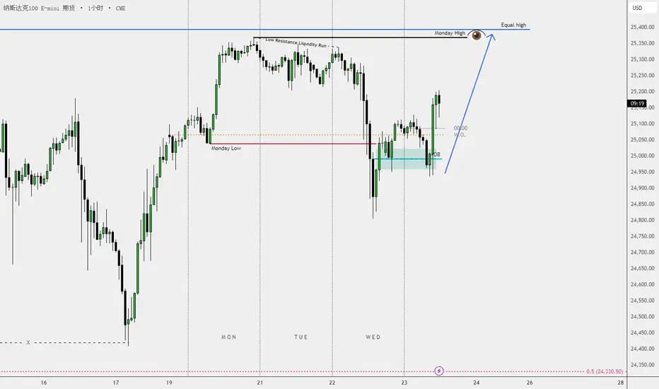 周图级别PO3进入分配阶段,拿掉周一卖方流动性之后目标上方低阻力流动性以及周一高点。
