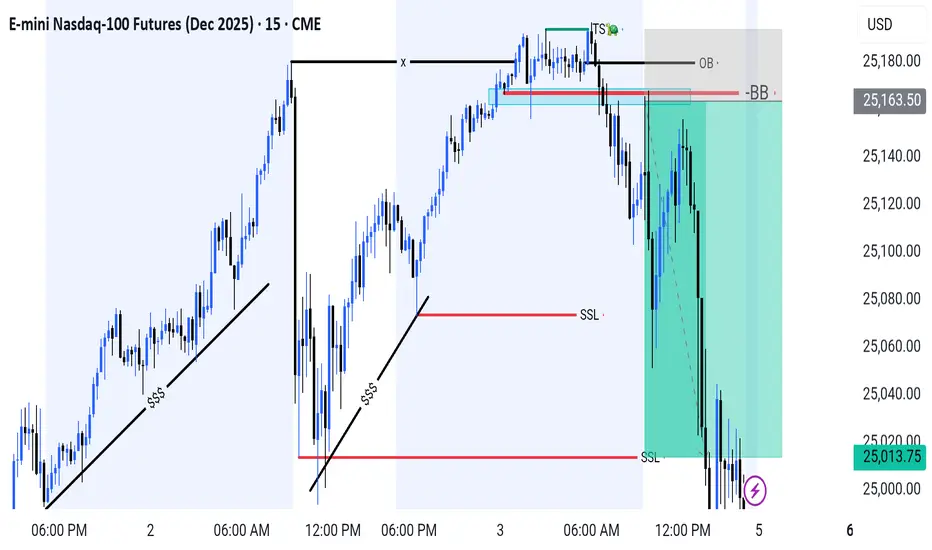 Price swept the internal liquidity (TS 🐢) and tapped into a premium Order Block (OB), showing clear signs of rejection. This confirms a potential shift in market structure with bearish momentum building up. Alhumdulillah Target Hit✅️
