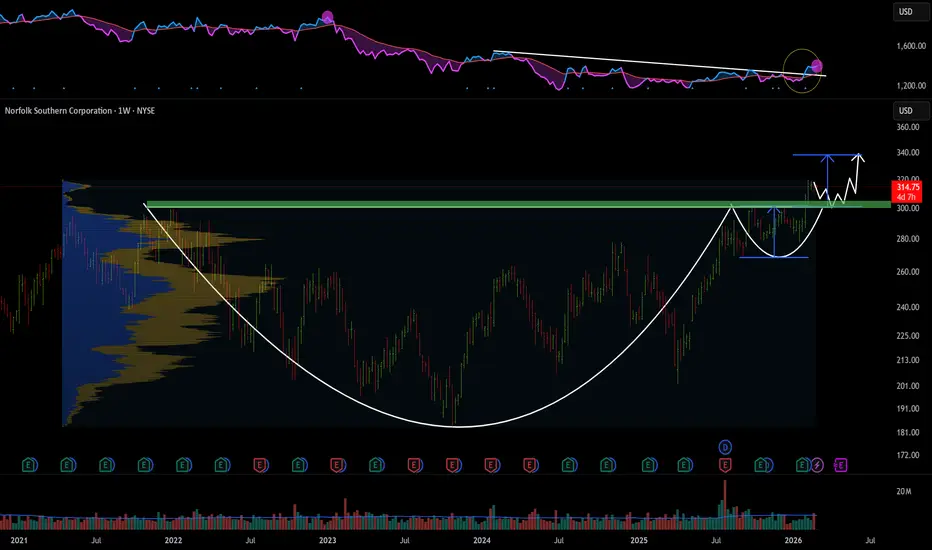Norfolk Southern (NSC) has triggered a massive 4-Year Cup & Handle breakout by clearing the $300 structural resistance.