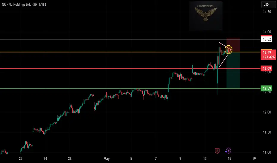 ๐ Entry: ~$13.49 (Breakdown confirmation from rising wedge)